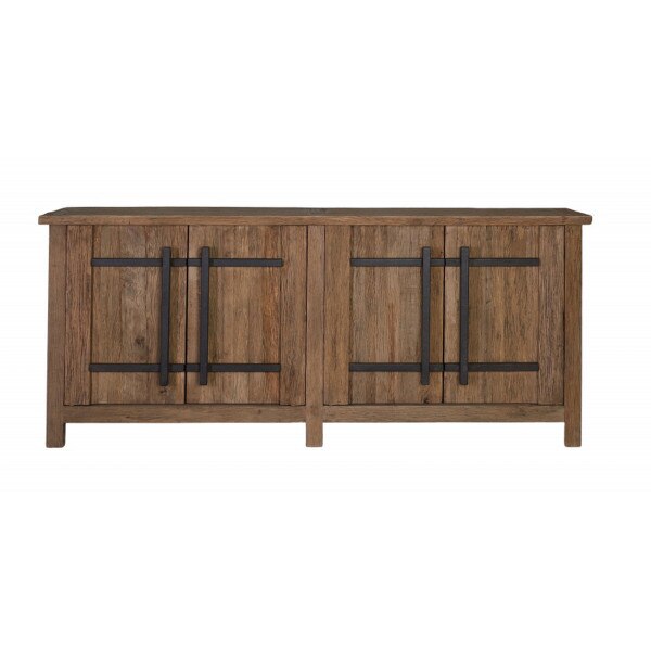 THE RECLAIMED OAK BUFFET IS A STUNNING STORAGE PIECE. DISPLAYING DISTINCTIVE WOOD GRAIN AND TEXTURE. THIS BUFFET COMBINES RUSTIC CHARM WITH FUNCTIONALITY, PROVIDING AMPLE STORAGE SPACE FOR YOUR DINING AREA OR LIVING ROOM. WITH ITS NATURAL APPEAL AND DURABLE CONSTRUCTION, THE RECLAIMED OAK BUFFET ADDS WARMTH AND CHARACTER TO YOUR HOME, MAKING IT A VERSATILE AND EYE-CATCHING FURNITURE CHOICE.