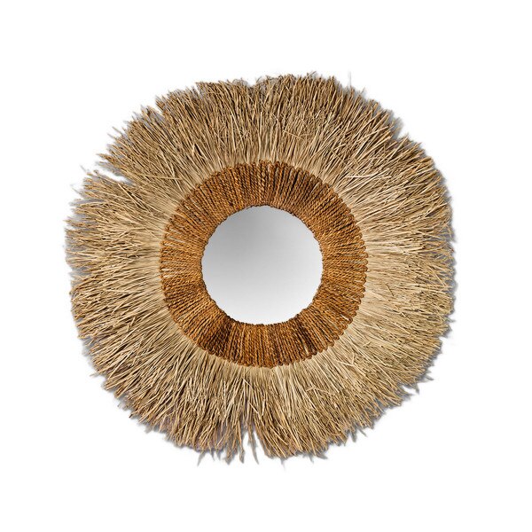 THE SEAGRASS MIRROR IS A NATURALLY BEAUTIFUL AND FUNCTIONAL DECORATIVE PIECE. HANDCRAFTED FROM SEAGRASS, IT FEATURES A LOVELY WEAVE PATTERN THAT ADDS TEXTURE AND VISUAL INTEREST. PERFECT FOR BEDROOMS, BATHROOMS, OR LIVING AREAS, THIS MIRROR BRINGS A WARM, EARTHY ELEMENT TO YOUR SPACE.